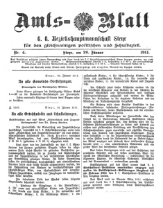 12 Steyr, 18. Jänner 1911 B. 1464 Kundmachung. Wahl für den Landessischereirat, Periode 1911-1913. In der Zeit vom 24. November bis 16. Dezember 1910 wurde die Neuwahl für den o.ö. Landessischerei¬ rat für die Periode 1911 bis 1913 durchgeführt und har die konstituierende Sitzung am 27. Dezember 1910 in Linz stattgefunden; hiebei wurden für die obige Periode gewählt zum Obmanne: P. Adalbero Angerer, Stiftsschaffner in Lambach, und zum Obmannstellvertreter: Herr Th. W Großmann, Forstmeister in Gleint. Dies wird über Erlaß der r. k. o.-O. Statthalterei in Linz vom 5. Jänner 1911, Z. 12.725/1 ex 1910, allgemein verlautbart. Steyr, 20. Jänner 1911. Z. 1697. An alle Gemeinde=Vorstehungen. Schurf=Bewilligung. Von dem k. k. Revierbergamte zu Wels wurde unterm 3. Jänner 1911, Z. 35, dem Herrn Josef Schickt, Privat in Weyer (Mark), im politischen Bezirke Steyr, über dessen Gesuch de präsentato 3 Janner 1911, Z. 30, die Bewilligung erteilt, „im politischen Bezirke Steyr nach den Bestimmungen des allgemeinen Berggesetzes vom 23. Mai 1854 auf die Dauer eines Jahres, d. 1. bis 2. Jänner 1912 zu schurfen. Das Schurfgebiet umfaßt den ganzen politischen Be¬ zirt Steyr in Oberösterreich mit Ausschluß des für das Jodbad Hall (O.=Oe.) bestimmten Schutzrayones. Bei der Ausübung dieser Bewilligung ist der Schürfer verpflichtet, sich genau an die Vorschriften des overwähnten Berggesetzes zu halten, und allen diesfälligen Anordnungen der zuständigen Bergbehörde unweigerlich nachzukommen widrigens die in dem Berggesetze auf die Unterlassung dieser Pflichten verhängten Folgen einzutreten haben. Nach Ablauf obiger Frist, und insoferne eine Ver¬ längerung derselben bei der zuständigen Bergbeyorde nicht erwirkt wurde, erlischt gegenwärtige Schurfbewilligung mit allen auf deren Grundlage erworbenen Schurfrechten von selbst. Die Gemeinde=Vorstehungen werden angewiesen, vor¬ stehende Schurf=Bewilligung möglichst allgemein zu ver¬ lautbaren. Steyr, 22. Jänner 1911. Z. 163/Sch. An den Zweigverein Kremsmünster des o.ö. Lehrervereines. Der k. k. Bezirksschulrat Steyr erteilt den Mitgliedern des Zweigvereines Kremsmünster, welche an der Zweig¬ lehrerversammlung am 11. Februar l. J. in Wartberg sei¬ nehmen wollen, den hiezu erforderlichen Urlaub. Z. 1762 Steyr, 24. Jänner 1911. An alle Gemeinde=Vorstehungen, k. k. Gen¬ darmerie=Posten=Kommanden k. Warnung vor Stanislaus Mankowsky. Zufolge Erlasses der t. k. o.ö. Statthalterei vom 12. Jänner 1911, Z. 341/11, soll ein gewisser Stanislaus Mantowski, früher in Seattle, Staat Washington, ansässig gewesen, angeblich Agent der „Patterson Land Company, die Absicht haben, in nächster Zeit beyufs Wer¬ bung von Kolonisten für amerikanische Landgesellschaften Europa, wahrscheinlich auch Oesterreich zu besuchen. Dem Genannten wird vorgeworfen, einen gewissen Simon Dudet in Galizien veranlaßt zu haben, sein Grund¬ stuck zu veräußern, nach Amerita auszuwandern und dort mit dem Erlöse aus seinem Grundstücke ein wie sich später herausstellte, zur Landwirtschaft ungeeignetes Stuck Land an¬ zulaufen, wodurch Düder bedeutenden Schaden erlitten habe. In ähnlicher Weise soll Mankowski auch in anderen Fallen vorgegangen sein. Die Gemeinde=Vorstehungen und k. k. Gendarmerie¬ Posten=Kommanden rc. werden angewiesen, die Bevolterung vor dem Genannten in eindringlicher Weise zu warnen, und ist über besondere Wahrnehmungen sogleich anher zu verichten. 3. 2056. Steyr, 25. Jänner 1911. An alle Gemeinde=Vorstehungen und 1. 1. Gendarmerie=Posten=Kommanden. Ausforschung des abgängigen Josef Kalab. Der 11jährige Josef Kala, Sohn des Taglohners Josef Kalab in Groß=Matau, Bezirkshauptmannschaft Littau, Mähren, hat sich am 13. September 1910 vormittags aus dem Elternhause, unbekannt wohin, entfernt. Die bisherigen Nachforschungen des Vaters und der Bezirkshauptmannschaft Littau sind resultatlos geblieben Der Knabe ist seinem Alter nach entsprechend ent¬ wickelt, hat längliches Gesicht, blonde Haare und blaue Augen. Bekleidet war er mit schwarzer Pluschmutze, schwarzem Rocke, lichten, schwarzgestreiften Zeughosen und war varfüßig. Die Forschung nach dem Abgängigen ist einzuleiten und über ein positives Ergebnis derselben sogleich zu berichten Z. 1956. Steyr, 24. Jänner 1911. Ausforschung des Jaroslaus Pölder auch Pölderl. Zufolge Erlasses der t. k. o.ö. Statthalterei vom 9. Jänner 1911, Z. 12.757/11 ex 1910, zieht der für die Landes=Zwangsarbeits=Anstalt in Prag notionierte Jaroslaus Pölder, auch Polder genannt, als Kramer in der Welt herum und konnte bis jetzt nicht aufgegriffen werden. Derselbe ist im Jahre 1883 gevoren, nach Luceni, polit. Bezirk Budweis, zuständig, ist von mittelgroßer und mittelstärker Statur, har längliches Gesicht, braune Gesichts¬ farbe, zigeunerartiges Aussehen, braune Haare und Augen¬ brauen, kleinen Schnurrbart, schwarze Augen, längliche Nase