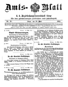 der A. U. Bezirkshauptmannschaft Siegt für den gleichnamigen Politischen uno Schulbezirk. Nr. 21. 1911. Steyr, am 18. Mai Das Amtsblatt erscheint jeden Donnerstag und kann durch die k. k. Bezirkshauptmannschaft Steyr bezogen werden, wo auch geeignete Inserate angenommen werden. — Pranumerationspreis für portofreie Abonnenten: Ganzjährig 5 K und für Portopflichtige Einzelne Nummern kosten 10 h. Abonnenten ganzjährig 6 K 20 h, halbjährig 3 K 10 h. - Soweit der Vorrat reicht, können auch ältere Jahrgänge und einzelne Nummern bezogen werden. Mit Beziehung auf die bestehenden Vorschriften werden Steyr, 16. Mai 1911. Z. 11.967. die Gemeinde=Vorstehungen aufmerksam gemacht, daß zur Anzeige solcher vorgekommenen Meldungen außerhalb des Amts=Erinnerungen. regelmäßigen Ort vermeldetermines stets gelbe Landsturm¬ Neueinteilung der Sanitätsgemeinden. Meldeblätter zu benutzen sind. Solche Landsturm=Meldeblätter wurden allen Ge¬ jene Gemeinde=Vorstehungen, welche dem v. a. Auf¬ meinden in entsprechender Anzahl mit den 9. a. Erlasse trage im obigen Gegenstande, Z. 6406, vom 6. April 1911, vom 29. März 1909 (Amtsblatt Nr. 13 ex 1909) über¬ Amtsblatt Nr. 15, noch nicht entsprochen haben, werden mittelt. angewiesen, den bezüglichen Bericht nunmehr ehestens zu erstatten. - Steyr, 10. Mai 1911. Z. 11.331. Steyr, 17. April 1911. Z. 8773. An alle Gemeinde=Vorstehungen. Brandsammlung für Hörsching. Konkurs Jene Gemeinde=Vorstehungen, welche dem v. a. Erlasse Amtsblatt 16, betreffend Brand¬ vom 17. April 1. J., zur Besetzung von zwei Graf Deblinschen Stiftungsplatzen voymischer Abteilung in den k. u. k. Militar=Erziehungs¬ sammlung für Horsching, noch nicht entsprochen haben und Bildungsanstalten. werden eingeladen, die Sache ehestens zum Abschlusse zu bringen. Landes¬ Laut Erlasses des k. k. Ministeriums für verteidigung vom 30. März 1911, Nr. 986/XIII, gelangen Steyr, 15. Mai 1911. in den k. u. k. Militar=Erziehungs= und Bildungsanstalten mit Beginn des Schuljahres 1911/12 zwei Graf Deblinsche An alle Gemeinde=Vorstehungen. Stiftsplatze bohmischer Abteilung zur Besetzung Die Bewerber um diese Plate haben die Mittellosigkeit Hinausgabe der Reichsgesetz-Blätter. der Eltern durch ein legales Mittellosigkeitszeugnis, dann Unter Einem gelangen die Reichsgesetz=Blatter Stuck den Umstand, daß sie einer Familie des boymischen Herren¬ AXXIV-XXXVI an die Gemeinde=Vorstehungen zur Hin¬ oder Ritterstandes angehoren, eventuell von einer Familie des Herren= oder Ritterstandes aus Mähren oder von Edel¬ ausgabe. leuten aus anderen erbländischen Provinzen abstammen, Ueber eventuelle Abgange ist binnen drei Tagen anher durch Diplom oder Stammbaum nachzuweisen, und ist dem zu berichten. Gesuche, in welchem die Anzahl der Geschwister des Kom¬ petenten, dann ob und welche von ihnen versorgt sind oder Steyr, 15. Mai 1911. ex offo Z. 11.858. bereits eine Stiftung genießen, gewissenhaft anzugeben ist, die Erklärung der Eltern oder Vormunder beizulegen, daß An alle Gemeinde=Vorstehungen. sie bereit sind, für den Fall des Erlangens einer dieser Stiftungsplätze die zur Unterstützung des Kandidaten allen¬ Aufenthaltsveränderungen von mit Widmungskarten be¬ falls noch nötigen Auslagen zu tragen. teilten Landsturmpflichtigen. Im übrigen haben die betreffenden Bewerber den all¬ In letzterer Zeit wurden zur Anzeige von erstatteten gemeinen Bedingungen für die Aufnahme in die k. u. k. Aufenthalts=Veränderungen seitens mit Widmungskarten ve¬ Militar=Erziehungs= und Bildungsanstalten zu entsprechen. ten Landsturmpflichtigen von einigen Gemeinde-Vor¬ Diese sind: gungen weiße Landsturm=Melderlatter in Verwendung 1. Die österreichische oder ungarische Staatsbürgerschaft; genommen.