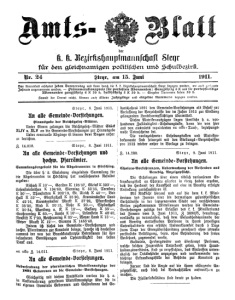 I. u. Bezirkshauptmannschaft Siegt für den gleichnamigen Politischen uno Schulbezirk. 1911. Meyr, am 10. Juni Nr. 24 Das Amtsblatt erscheint jeden Donnerstag und kann durch die k. k. Bezirkshauptmannschaft Steyr bezogen werden, wo auch geeignete Inserate angenommen werden. — Pranumerationspreis sur portofreie Abonnenten: Ganzjährig 5 K und für Portopflichtige Einzelne Nummern kosten 10 h. Abonnenten ganzjährig 6 K 20 h, halbjährig 3 K 10 h. - Soweit der Vorrat reicht, können auch ältere Jahrgänge und einzelne Nummern bezogen werden. burtsjahres 1891 den Gemeinde=Vorstehungen als Behelf zur Steyr, 6. Juni 1911. Verfassung der Verzeichnisse der im Jahre 1912 zur Stellung gelangenden Landsturmpflichtigen übermittelt. An alle Gemeinde=Vorstehungen. Diesen Matrikenauszugen liegen sämtliche h. a. vor¬ Hinausgabe der Reichsgesetz=Blätter. handenen Zuständigkeit=Erhebungsakte, dann die von hier Unter Einem gelangen die Reichsgesetz=Blatter Stuck aus von auswärts requirierten ex ofto=Tauf=, beziehungs¬ XLIV U. XLV an die Gemeinde=Vorstehungen zur Hinausgabe weise Totenscheine bei. Ueber eventuelle Abgange ist binnen drei Tagen anher Die vorbezeichneten Erhebungsarten und Marriten¬ zu berichten. dokumente sino seinerzeit mit den Stellungs=Verzeichnissen pro 1912 wieder anher in Vorlage zu bringen. Steyr, 8. Juni 1911. Z. 14.018. Steyr, 9. Juni 1911. 3. 14.120. An alle Gemeinde=Vorstehungen und hochw. Pfarramter. An alle Gemeinde=Vorstehungen. Sammlungsergebnis für die Abgebrannten in Hörsching. Cholera=Vorkehrungen, Ueberwachung der Reisenden aus Venedig, Anzeigepflicht. Die über v. a. Einladung eingeleitete Sammlung für die Abgebrannten in Horsching hat nachstehendes Resultat Die Erhebungen über einen tödlich verlaufenen Er¬ ergeben: krankungsfall an Chorera asiatica in Graz haben ergeben, Aschach K 10.—. Garsten K 125•57, Gleik K 323 daß die Herkunft der Krankheit auf eine in Venedig erfolgte Losensteinleithen K 19460, Sierning K 3355, Ternberg Ansteckung zuruckzuführen ist Bad K 20.—, Thanstetten K 202 19, St. Ulrich K 40 Mit Rücksicht hierauf und auf die dem k. k. Mini¬ Kremsmünster Land Hall K 55.—, Everstanzen K 3520, sterium des Innern über die dermaligen gesundheitlichen K 4216, Kremsmünster Markt K 3792, Pfarrkirchen Verhältnisse in der letztgenannten Stadt von verschiedenen 20.— Sipoachzeu Seiten zugekommenen Mitteilungen werden die Gemeinde¬ K 3520, Ried K 50 15, Mohr Gaflenz K 33 Vorstehungen zufolge des Erlasses des t. k. Ministeriums K 2034, Wartberg a. K. K 10.— Großraming K 60.—, Lausa K 10.—, Losenstein K 48.40, des Innern vom 2. Juni 1911, Z. 3890/8, beauftragt, Neustift K 720, Reichraming K 25.—, Weyer Land K 15.—, vorläufig zu veranlassen, daß dem Gesundheitszustande der aus Venedig eintreffenden Personen in ihrem jeweiligen Weyer Markt K 12.—. Summe K 146548. Aufenthaltsorte eine erhöhte Aufmerksamkeit durch 5 Tage Indem ich dieses den Gemeinde=Vorstehungen und (vom Tage der Grenzuverschreitung gerechnet) ohne jedwede hochw. Pfarramtern zur Kenntnis bringe, spreche ich denselven personliche Belästigung, bezw. ohne Behinderung des freien namens der von der Brandtatastrophe Betroffenen für ihre Verkehres, zugewendet werde. besonderen Bemühungen und Opferwilligkeit den besten Gastwirte, Herbergsvater und überhaupt Personen, Dank aus. welche solchen Zugereisten Unterkunft geben, sowie Haus¬ haltungsvorstande, sind zu verpflichten, das Eintreffen unver= Steyr, 8. Juni 1911. ex offo . 14.011. züglich der Ortsbehörde anzuzeigen und vorkommende ver¬ Erkrankungsfalle der Behörde zur Kenntnis zu dächtige An alle Gemeinde=Vorstehungen. bringen. Ferner sind die Aerzte auf die ihnen obliegende An¬ Uebersendung der Pfarramtlichen Matrikenauszüge der zeigepflicht, auch bloß bei Verdachtfallen aufmerksam zu 1891 Geborenen an die Gemeinde=Vorstehungen. machen. Gleichzeitig mit diesem Amtsblatte werden die h. a. Die Isoliertotalitaten sind bereit zu halten. in Aufbewahrung gewesenen Matrikenauszuge über die in der eigenen Gemeinde Geborenen und Gestorbenen des Ge¬
