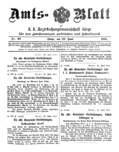 Steyr, 16. Juni 1911. B. 1078/Sch. Sweiglehrer=Vereinsversammlung. Der Zweigleyrerverein Kremsmünster halt am 8. Juli 1911 in Ried bei Kremsmünster seine zweite diesjahre Vereinsversammlung mit nachstehender Tages¬ ordnung ab: Einlauf. „Geistesstörungen im Kindesalter (Dr. Hans Steinmaurer, Nied). 3. Inwiefern bedürfen die gegenwärtig bestehenden Normallehrplane einer Abänderung (H. R. Schweinhammer, Kruhub). 4. Anträge. Den Mitgliedern des Zweigleyrervereines Krems¬ münster wird der zum Besuche obiger Versammlung event. notwendige Urlaub hiermit bewilligt. Steyr, 21. Juni 1911. Z. 1125/Sch. An sämtliche Schulleitungen. Betreffend die Verzeichnisse der nicht katholischen, der blinden und der taubstummen Schuler, sowie der Verzeichnisse nach Jahrgangen und Klassen. Alle diese Verzeichnisse sind spätestens acht Tage nach Beginn des neuen Schuljahres dem k. k. Bezirksschulrate vorzulegen. Die Verzeichnisse der nicht katholischen Schüler sind nach den Religions=Bekenntnissen getrennt zu verfassen, auch er die blinden und für die taubstummen schulpflichtigen Kinder ist je ein separates Verzeichnis anzulegen. Die Leitungen jener Schulen mit Schuljahrsbeginn im Mai, welche mit diesen Verzeichnissen etwa noch im Rückstande sein sollten, haben dieselben nunmehr ehestens vorzulegen. (N.) An alle Gemeinde=Vorstehungen. Betreffend Kundmachungen zur Einbringung der Erwerb¬ steuererklärungen pro 1912/1913. Ueber Auftrag der k. k. Finanz=Direktion Linz vom 8 Juni 1911, Z. 320/9 A II, werden den Gemeinde=Vor¬ stehungen in den nächsten Tagen eine Anzahl Kund¬ machungen betreffend die Einbringung der Erwerbsteuer¬ erklärungen für die Veranlagungsperiode 1912/1913 und mehrere Lagen Erwerbsteuer-Erklärungsorucksorten mit der Einladung zugehen, die Kundmachungen an jedermann zugänglichen, geeigneten Orten sogleich zu affigieren und die Drucksorten den Steuerpflichtigen und zwar: für jede Unter¬ nehmung ein Formulare über Verlangen zur Verfügung zu stellen. Die Kundmachungen haben bis inklusive 1. August 1911 affigiert zu bleiben und ist nach Ablauf dieser Zeit ein Formulare mit der Affigierungsklausel versehen samt den erübrigten Erklärungsdrucksorten wieder anher vorzulegen. Ein allfälliger Bedarf an „Anleitungen zur Verfassung der Erwerbsteuer=Erklärungen“ ist hieramts anzusprechen. 101 ex off 3. 15.100. Steyr, 21. Juni 1911. an alle Gemeinde=Vorstehungen. Aufarbeitung von Schadholzern behufs Vorbeugung gegen Borkenkäfergefahr. Im Sinne der Bestimmungen der 99 50 und 51 des Reichsforstgesetzes sowie des § 12 der Verordnung des k. k. Ackerbauministeriums vom 3. Juli 1873, K. 6953, ergeht beyufs Vorbeugung gegen die Gefahr des Umsichgreifens forstschädlicher Insekten, von welchen bezüglich der Nadel¬ holzwaldungen vor allem die Bortentafer in Betracht kommen, an sämtliche Waldbesitzer die eindringliche Aufforderung, rechtzeitig dafür Sorge zu tragen, daß ihre Waldungen von allen Wind= bezw. Schneebruch= und Druckholzern, sowie überhaupt allen liegenden, lehnenden oder sonst be¬ schädigten und im Safte stockenden Holzern sovalo als möglich und gründlich geraumt, bezw. daß diese Holzer rechtzeitig entrinder werden. Ebenso ist es notwendig, daß aus den Holzschlagen der Schlagabraum (Gipfel und Astholz) baldigst entfernt werde, bezw. sind, wo dies nicht tunlich sein sollte, die Gipfel¬ stücke zu entrinden. Eine Außerachtlassung dieser zum Schutze gegen forst¬ schädliche Insekten getroffenen Verfügung hat die Einleitung der Strafamtshandlung gegen die Säumigen zur Folge. Die Gemeinde=Vorstehungen haben die Waldbesitzer und Gemeinde=Forstaufsichtsorgane behufs Einhaltung bezw. Ueberwachung dieser Vorsichtsmaßnahmen ehestens entsprechend zu verständigen. 14.516, 15.294 u. 15.556. Steyr, 23. Juni 1911. An alle Gemeinde=Vorstehungen und l. 1. Gendarmerie=Posten=Kommanden. Widerruf. Die Ausforschung des Josef Eduard Badermann (Baldemann), y. a. Amtsblatt Nr. 9, ex 1907 des Gottlieb Mostersky, y. a. Amtsblatt Nr. 2, ex 19.0, und der Anna Rosenhammer, y. a. Amtsblatt Nr. 23, ex 1911, ist einzustellen. Z. 15.525, 15.524 u. 15.526. Steyr, 27. Juni 1911. An alle Gemeinde=Vorstehungen und 1. 1. Gendarmerie=Posten=Kommanden. Warnung vor Unterstützungsschwindler u. zw.: Leopold Stix, geboren am 15. November 1868 zu Mant, zuständig nach Peyerstetten, Bez. Poggitall in N.=Oe., und dessen Gattin Marie Stix, geb. 19. September 1866; Johann Mauer, geboren am 17. März 1874 in Gaaden, pol. Bez. Mödling in N.=Oe., zuständig ebendort ; Leopold Freitag, gevoren am 17. Oktober 1893, zuständig in Schwechat, pol. Bezirk Bruck a. d. Leitha, Hilfsarbeiter; Hermann Rambarter, geboren 1. April 1883 zu Pulkau, Bez. Oberhollabrunn in N. Oe., dahin zuständig, ledig, Schankbursche;