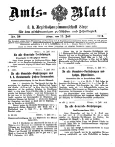 106 sind, daher auch für jene Meldungen, welche von mi Widmungskarten bereiten Landsturmpflichtigen erstattet wurden. Gelbe Landsturmmeldeblatter sind nur zu verwenden, wenn ein mit Widmungstarte beteilter Landsturmpflichtiger außerhalb der Zeit der jährlichen Ottovermeldung den Wechsel seines Aufenthaltsortes der Gemeinde=Vorstehung zur Anzeige bringt. Steyr, 6. Juli 1911. Z. 16.174. An alle Gemeinde=Vorstehungen. Termin für die letzte Waffenübungsperiode für die Landwehr. o.ö. Statthalterei vom Laut Erlaß der k. k. 22. Juni l. J., Nr. 5275, hat das k. k. Landesvertei¬ digungs=Kommando in Innsbruck mit Zuschrift vom 16. Juni l. J., M.=A. Nr. 3404, bekanntgegeben, daß als Termin für die letzte Waffenübungsperiode der Truppen der t. k. Landwehr festgesetzt wurde: Ausrüstungstag: Bei den Landwehrfußtruppen, bei der Reitenden Tiroler Landesschutzen=Division und bei der Landwehrartillerie der 17. August, beim Landwehrulanen¬ Regiment Nr. 6 der 16. August 1. J. Abrüstungstag: Bei den Landwehrfußtruppen und bei der Landwehrartillerie der 13. September, beim Land¬ wehrulanen=Regiment Nr. 6 der 14., bei der Reitenden Tiroler Landesschutzen=Division der 10. September 1.35 Vorstehendes ist in den Gemeinden in ortsüblicher Weise allgemein zu verlautbaren. Z. 16.168. Steyr, 6. Juli 1911. An alle Gemeinde=Vorstehungen. Kuratorium des Gewerbeförderungs=Institutes in Görz mit einer Preisausschreibung für neue gewerbliche Fremdenartikel. Das Gewerbeförderungs=Institut in Gorz erläßt eine allgemein zugängliche Preis=Ausschreibung für neue gewerb¬ liche Fremdenartikel mit dem 31. August 1911 als Preis¬ bewerbungstermin. Hierauf sind die interessierten Kreise mit dem Be¬ merten aufmerksam zu machen, daß Prospekte beim Kura¬ torium obigen Institutes anzusprechen waren. Steyr, 4. Juli 1911. Z. 16.061. An alle Gemeinde=Vorstehungen. Denkmaltag in Salzburg 1911. Wie bereits in den offentlichen Tagesblattern tundge¬ macht wurde, wird heuer der „Tag für Denkmalpflege zum erstenmal auf österreichischem Boden veranstalten und in der Zeit vom 13. bis 16. September als „Gemeinsame Tagung für Denkmalpflege und Heimatschutz in Salzburg abgehalten. Die k. k. Regierung begrüßte den Zusammentritt dieser internationalen, unter dem höchsten Protektorate Seiner t. und k. Hoheit des durchläuchtigsten Herrn Erzherzogs Franz Ferdinand stehenden Veranstaltung auf heimischem Boden auf das Warmste, da sie von derselben mit Recht erwarten zu konnen glaubt, daß sie den neueren Anschauungen der Denkmalpflege, deren Bedeutung immer mehr anerkannt wird, auch in Oesterreich mehr Geltung als bisher ver¬ schaffen und die auf den Schutz der Heimat gerichteten Be¬ strebungen nachdrücklichst fordern wird. In dieser Erwägung wurde daher die Tagung vom t. k. Ministerium für Kultus und Unterricht und vom k. k. Ministerium für öffentliche Arbeiten in weitgehendster Weise gefordert und auch vom k. k. Eisenbahnministerium durch Gewährung von Fahrtbegünstigungen für Teilnehmer unter¬ stützt, um einen würdigen Verlauf dieser Veranstaltung und eine möglichst große Zahl von Teilnehmern aus den inter¬ essierten Kreisen zu sichern. Die Gemeinde=Vorstehungen erhalten zufolge Erlasses der k. k. Statthalterei vom 22. Juni 1911, Z. 9016/IV, den Auftrag, jene Anstalten, Institute, Korporationen, Vereine, sowie Persönlichkeiten, bei welchen ein Interesse für den Gegenstand vorausgesetzt werden kann, auf das nachfolgende Programm mit der Aufforderung aufmerksam zu machen, zu dieser Tagung Vertreter zu entsenden. Eventuelle Anmeldungen werden auch hieramts bis 18. August 1. J. entgegengenommen. Gemeinsame Tagung für Denkmalpflege und Heimatschutz in Salzburg 1911. Programm. Mittwoch den 15. September: Begrüßungsabend in der Aula academica am Universitätsplätze (Beginn 7½ Uhr). Offizielle Be¬ grüßungen und Ansprachen. Geschaftliche Mit¬ teilungen. Hierauf Lichtbildervortrag des Herrn Professor Dr. Strzygowski=Wien über: „Salzburgs Kunstdenkmäler Nachher geselliges Beisammensein im Stieglteller. Donnerstag den 14. September: Erste Sitzung in der Aula academica, Beginn 9 Uhr vormittags. Tagesordnung: 1. Eröffnungsansprache des Vorsitzenden Geh. Hofrat Professor Dr. von Bechelhaeuser=Karlsruhe. „Entwicklung und Ziele der Denkmalpflege in Deutschland und Oesterreich“. Referenten: Gey. Regierungs¬ rat Professor Dr. Clemen=Bonn und Professor Doktor vorak=Wien. 3. „Entwicklung und Ziele des Heimatschutzes in Deutschland und Oesterreich. Referenten: Prof. Schulze Naumburg=Saaleck, Archivsekretar und Konservator Dr. Giannoni=Wien und Dr. von Szenet¬ towski-Graz. 4. „Erhaltung des Kernes alter Städte." Referent: Geh. Hofrat Professor Dr. Gurlit=Dresden. „Der Kamf um Alt=Wien. Referent: Professor Dr. Neuwirth=Wien. Die Sitzung wird unterbrochen durch eine Frühstückspause von 12 bis 11 Uhr. Schluß der Sitzung: nach 3 Uhr. Nach Schluß der Sitzung gruppenweise Besichtigung der Kunstdenkmaler der Stadt unter sachkundiger Führung. (Hierüber wird nayeres Programm bekanntge¬ geven werden.)