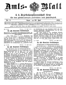 . der I. u. Weishauptschaft St. für den gleichhältigen Politischen und Schulbezirk. Nr. 1911. Steyr, am 1. Juli Das Amtsblatt erscheint jeden Donnerstag und kann durch die t. k. Bezirkshauptmannschaft Steyr bezogen werden, wo auch geeignete Inserate angenommen werden. — Pranumerationspreis sur portofreie Abonnenten: Ganzjährig 5 K und für portopflichtige Einzelne Nummern kosten 10 h. Abonnenten ganzjährig 6 K 20 h, halbjährig 3 K 10 h. Soweit der Vorrat reicht, können auch ältere Jahrgänge und einzelne Nummern bezogen werden. die Tabakfabrikate bei einer offentlichen Trafit ohne Ver¬ Steyr, 19. Juli 1911 Z. 17.138. wendung irgendwelcher Fassungsdokumente um den Kon¬ An alle Gemeinde=Vorstehungen. sumenten=Tarifspreis zu beziehen. Bei diesem Anlasse ist den bezeichneten Gewerbe¬ Grieskirchen, neu errichtete Bezirkshauptmannschaft. Zu¬ weisung an den zuständigen Landwehr=Ergänzungs= (Land¬ treibenden auch bekanntzugeben, daß sie nach wie vor im sturm=) Bezirt. Falle der Ausübung der Tabarverscheißlizenz der Trafikanten¬ k. o.ö. Statthalterei vom Vorschrift unterworfen bleiben, die bei den Verschleißbe¬ Ueber Erlaß der k. 7. Juli 1911, Z. 933/IV, wird hiemit kundgemacht, daß yorden oder den Finanzwachtontroll=Bezirksleitungen einge¬ Ministeriums für Landesver¬ laut des Erlasses des k. k. seyen oder wie bisher gegen Entgelt bezogen werden kann. teidigung vom 23. Juni 1911, Z. 1543 VII, die k. k. Be¬ zirkshauptmannschaft Grieskirchen dem Landwehr=Er¬ Steyr, 25. Juli 1911. 3. 17.623. ganzungsbezirk Nr. 2 (Landwehrbataillonsbezirk Nr. 2), be¬ ziehungsweise dem Landsturmbezirk Nr. 2 zugewiesen wurde. An alle Gemeinde=Vorstehungen. Stempelfreiheit in Notstandsangelegenheiten. Steyr, 19. Juli 1911. 3. 17.139. Laut Erlasses des k. k. Ministeriums des Innern vom An alle Gemeinde=Vorstehungen. 7. Juni l. J., Z. 22.125, hat das k. k. Finanzministerium mit dem an alle Finanz=Landesbehörden ergangenen Erlasse Neue Vorschriften über das Tabakverschleißwesen. vom 11. Mai 1911, Z. 33.241, auf Grund der mit der Im Verordnungsblatte für den Dienstbereich des k. k. Allerhöchsten Entschließung vom 13. März 1800 erhaltenen Finanz=Ministeriums vom 22. Juni 1911, XX. Stua Ermächtigung den gerichtlichen Legalisierungen der Unter¬ erscheinen sub Nr. 103 die Verordnung des Finanz¬ schriften von Analphabeten auf den stempelfreien Ver¬ Ministeriums vom 10. Juni 1911, Z. 43.889, betreffend wendungs=Ausweisen über die anläßlich des Morstanos ge¬ die Besetzung, Neuerrichtung und Auflassung der Tavatver¬ wahrten individuellen Unterstützungen aus den staatlichen schleißgeschafte (Trafikbesetzungsvorschrift) und sub Nr. 104, Notstandsmitteln die Stempelfreiheit zuerkannt. die Verordnung des Finanz=Ministeriums vom 10. Juni 1911, Zur Begründung der Stempelfreiheit ist in diesen Z. 44.236, betreffend die Regelung des Tabarverschlei߬ Ausweisen an der Stelle, an welcher sonst das Stempel¬ wesens (enthaltend die Verlegervorschrift, die Trafikanten¬ zeichen für die Legalisierung angebracht werden mußte, der vorschrift, die Vorschrift für Spezialitätenverschleißer und den erwähnte Erlaß zu berufen. Amtsunterricht zu den Vorschriften über das Tabarver¬ Hievon werden die Gemeinde=Vorstehungen infolge schleißwesen) verlautbart. Statthalterei=Erlasses vom 18. Juli 1911, Z. 441/1, zur Zufolge Erlasses des k. k. Handels=Ministeriums in eigenen Wissenschaft und gegebenen Faus zur Verständigung Wien vom 3. Juli 1911, Z. 19.979, werden die Gemeinde¬ der interessierten Bevolterungskreise in Kenntnis gesetzt. Vorstehungen beauftragt, die Gast= und Schankgewerbe¬ treibenden in entsprechender Weise insbesondere auch durch 3. 17.519. Steyr, 24. Juli 1911. ihre verufenen Genossenschaften darauf aufmerksam zu machen, daß nach § 53 der oben zitierten Trafikbesetzungs=Vorschrift An alle Gemeinde=Vorstehungen. die Inhaber von konzessionierten, in Gebäuden unterge¬ Automobilstatistik. brachten Gast= und Schankgewerben (§ 15, P. 15 und Mit dem Erlasse der k. k. o.o. Statthalterei vom § 10 der Gewerbeordnung mit Ausnahme des Kleinver¬ 22. Juli l. J., Z. 6771, wurde die k. k. Bezirkshaupt¬ schleißes von gebrannten geistigen Getranten) auch ohne mannschaft Steyr beauftragt, über die Anzahl der Auto¬ besondere Verscheißbefugnis berechtigt sind, die in der mobile und Motorrader, welche mit 30. Juni 1910 im Traftvorschrift bezeichneten Tabakfabrikate an ihre Gäste zu unterstehenden Bezirke in den Gemeinden ihren Standort verabreichen, daß jedoch nach § 59, Absatz 3, der oben hatten, und zwar gesondert nach der Art der Fahrzeuge zitierten Trafikantenvorschrift die Haustrafiken gehalten sind,