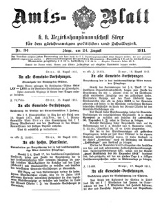 der I. k. Bezirkshauptmannschaft Stel¬ für den gleichnamigen Politischen uno Schulbezirk. Nr. 34 1911. Steyr, am 24. August Das Amtsblatt erscheint jeden Donnerstag und kann durch die k. k. Bezirkshauptmannschaft Steyr bezogen werden, wo auch geeignete Inserate angenommen werden. — Pranumerationspreis für Portofreie Abonnenten: Ganzjährig 5 K und für Portopflichtige Abonnenten ganzjährig 6 K 20 h, halbjährig 3 K 10 h. - Einzelne Nummern kosten 10 h. Soweit der Vorrat reicht, können auch ältere Jahrgänge und einzelne Nummern bezogen werden. Steyr, 19. August 1911. ex off 3. 19.074. Steyr, 21. August 1911. An alle Gemeinde=Vorstehungen. An alle Gemeinde=Vorstehungen. Verzeichnung der in das landsturmpflichtige Alter treten¬ Hinausgabe der Reichsgesetz=Blätter. den Junglinge. Unter Einem gelangen die Reichsgesetz=Blatter Stuck Gemaß den Bestimmungen des § 8, Punkt 17 der LXV — LXVII an die Gemeinde=Vorstehungen zur Hinausgabe. Landsturm=Organisationsvorschrift, langen zum Zwecke der Ueber eventuelle Abgange ist binnen drei Tagen anher Verzeichnung der mit 1. Jänner 1912 in die Landsturm¬ zu berichten. pflicht eintretenden Jünglinge von den zuständigen hochw. Pfarramtern Auszüge aus den Tauf= (Geburts) bezw. Steyr, 15. August 1911. 3. 70 Präs. Sterbematriken über alle im Jahre 1893 in der Gemeinde geborenen und seither in der Gemeinde verstorbenen Personen An alle Gemeinde=Vorstehungen. männlichen Geschlechts im Laufe des Monats October bei den Gemeinde=Vorstehungen ein. Aenderung im Vorsitze der Steuerkommission I. Instanz. Auf Grund dieser Matritenauszuge haben die Gemeinde¬ Die k. k. Finanzdirektion in Linz hat mit Erlaß vom Vorstehungen die vorgeschriebenen Verzeichnisse in je einem Exemplar zu verfassen und dieselben bis zuverlässig 10. August 1911, Zahl 13/2/Pras., den t. k. Finanz¬ 10. Dezember l. J. anher in Vorlage zu bringen. Kommissar Alois Reiter über Ermächtigung des k. k. Betreffs Verfassung dieser Verzeichnisse wird auf die Finanz=Ministeriums von den Funktionen in den Steuer¬ Bestimmungen des y. a. Erlasses vom 9. September 1908, Kommissionen des hiesigen Bezirkes enthoben. Z. 22.165, (Amtsblatt Nr. 37 ex 1908) hingewiesen. Dies ist ortsüblich zu verlautbaren. Bei den in den Matritenauszugen als gestorben Eingetragenen, welche zur Zeit ihres Ablebens in der eigenen Gemeinde heimatsberechtigt waren, ist dieser Umstand in Steyr, 22. August 1911. ex off Z. 19.851. der Rubrik „Anmerkung durch die Beisetzung des Wortes „Zuständiger zum Ausdruck zu bringen. An alle hochw. Pfarramter. Die den bei Gemeinden bereits erliegenden oder denselben Vorarbeiten zur Verzeichnung der in das landsturmpflich¬ von hier aus noch zukommenden Zuständigkeitsanerkennungs¬ tige Alter tretenden Jünglinge. bezw. Zuständigkeitserhebungs=Akte, welche mit der Klausel „gegen Rückschluß bis 10. Dezember 1911 bezeichnet Gemäß § 8, Punkt 17, der Landsturm=Organisations¬ sino, sino gleichzeitig mit den am gleichen Tage h. a. fälligen Vorschrift, haven zum Zwecke der Verzeichnung der in Landsturm verzeichnissen anher in Wiedervorlage zu bringen. das landsturmpflichtige Alter tretenden Jünglinge die amt¬ lich bestellten Matrikenführer die Auszuge aus den Tauf¬ (Geburts= und Stervematriken zu verfassen und dieselben Steyr, 17. August 1911. Z. 19.428. den betreffenden Gemeinde=Vorstehungen zu übermitteln. An alle Gemeinde=Vorstehungen. Mit Bezug auf diese Bestimmungen werden die hochw. Herren Matritenführer ersucht, über die im Jahre 1893 Vorkehrung gegen die Einschleppung der Cholera. geborenen Personen männlichen Geschlechtes die oben bezeich¬ Aus Anlaß des Auftretens der Cholera in Triest neten Matrikenauszuge zu verfassen und dieselben im Laufe sano uch das k. k. Ministerium des Innern im Einver- des Monats October l. J. den Gemeinde=Vorstehungen zu neymen mit dem k. k. Ministerium des Handels bestimmt, übermitteln. die Ein= und Durchfuhr folgender Waren und Gegenstande