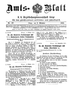 der u. k. Bezirkshauptmannschaft Sie für den gleichnamigen politischen uno Schulbezirk. Nr. 40 Steyr, am 3. Oktober 1911. Das Amtsblatt erscheint jeden Donnerstag und kann durch die k. k. Bezirkshauptmannschaft Steyr bezogen werden, wo auch geeignete Inserate angenommen werden. — Pranumerationspreis sur portofreie Abonnenten: Ganzjährig 5 K und für portopflichtige Abonnenten ganzjährig 6 K 20 h, halbjährig 3 K 10 h. -Einzelne Nummern kosten 10 h. Soweit der Vorrat reicht, können auch ältere Jahrgänge und einzelne Nummern bezogen werden. St. Ulrich K 4.80, Gastenz K 8- stetten K 10— Steyr, 4. Oktober 1911. Z. 23.102. Neustift K 436, Reichraming K 10.—, Weyer Land K 10.—, Summe K 23358 Weyer Markt K 5.—. An alle Gemeinde=Vorstehungen und ergeben, welcher seiner Bestimmung zugeführt wurde. I. 1. Gendarmerie=Posten=Kommanden. Im Namen der zu Beteilenden spreche ich den Ge¬ meinden hiemit für ihre Muhewaltung den Dank aus. Sammlungsbewilligung für den Immaculataverein in Wien. Der k. k. Statthalter für Oberösterreich hat mit Steyr, 29. September 1911. Z. 22.748. dem Erlasse Z. 4038/Pras., vom 2. Oktober l. J., dem Immatulatavereine zur Forderung und Ausbildung armer der Schule entwachsenen Mädchen in Wien die An alle Gemeinde=Vorstehungen und angesuchte Bewilligung zur Sammlung milder Gaben in hochw. Pfarramter k. Oberösterreich für die Zwecke des Vereines bei bekannten Wohltätern und Gönnern des Vereines mit Ausschluß der K. u. k. Ergänzungsbezirkskommando Nr. 14 in Linz. Sammlung von Haus zu Haus und der Behörden für die Nr. 5681/I. Zeit vom 3. Oktober bis 31. Dezember 1911 erteilt. Hievon setze ich die Gemeinde=Vorstehungen und Konkurs-Ausschreibung. k. k. Gendarmerie=Posten=Kommanden mit dem Beifügen in Kenntnis, daß dem zur Durchführung der Sammlung bevoll¬ Zur Beteilung mit einer Unterstützung aus der ersten mächtigten Vereinsorgane Hermine Hutschenreiter am Stiftung des Lorenz Ritter von Dietrich für das 2. Oktober l. J. das mit deren Photographie uno Persons Jahr 1911 wird hiemit der Konkurs ausgeschrieben. beschreibung versehene Sammelbuch Nr. 117 ausgestellt Auf diese Stiftung haben vor dem Feind verwundete wurde. Invalide Anspruch. Im Gesuch ist genau anzugeben: a) ob ledig, verheiratet oder Witwer Steyr, 2. Oktober 1911. Z. 23.081. b) Zahl und Alter der unversorgten Familien=Mitglieder; An alle Gemeinde=Vorstehungen. mitgemachte Feldzüge Verwundung und sonstige Gebrechen; Sammlungsergebnis für die Bukowina. Dekorationen Die mit dem h. a. Erlasse Z. 18.111 vom 31. Juli seit wann im Invalidenstande; für die 1911, Amtsblatt Nr. 31, angeordnete Sammlung die staatlichen Bezüge und sonstigen Einkommen; von der Hochwassertatastrophe Betroffenen in der Bukowina, welchen die Patental=Urkunde beizu¬ Die Gesuche, hat trotz der fortwährenden Inanspruchnahme der Milorarigschließen ist, sind bis längstens 31. Oktober l. J. beim keit der Bewohnerschaft den Sammelbetrag per 233 K 58 h k. u. k. Ergänzungs=Bezirkskommando Nr. 14 in und zwar von den Gemeinden: Linz einzubringen. Krems¬ Bad Hall K 18Eberstallzell K 10 Später einlangende Gesuche werden nicht berücksichtigt. Kremsmünster Markt K 1960, munter Land K 16.— 750, Sippachzen Ried Pfarrkirchen K 16.40, Hierauf sind etwa im Gemeindegebiete wohnhafte An¬ Aschach Wartberg an der Krems K 10 K 517, spruchsberechtigte besonders aufmerksam zu machen. K 10.—, Garsten K 20 20, Glein K 10.—, Losensteinleihen K 7.—, Sierning K 21.50, Ternberg K 10.—, Than¬