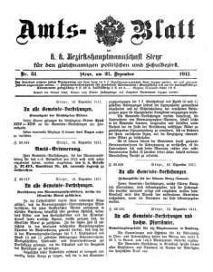 Nach dem Einlangen der Landsturmpasse für die dem Assenjahrgange 1899 angehorende Mannschaft werden y. a. gemeindeweise Verzeichnisse ausgefertigt, welche sodann an die Zuständigkeitsgemeinden behufs Eintragung der in den¬ selben Genannten in die Sturmrolle übermittelt werden. Steyr, 14. Dezember 1911. Z. 29.084. An alle Krankenkassen=Vorstehungen. Nachweisung über Mitgliederbewegung und Kassegebarung bei den Krankenkassen. Die Krankenkassen=Vorstehungen werden angewiesen, die Nachweisungen über Mitgliederbewegung und Kassege¬ barung im 11. Halbjahr 1911 bis zuversichtlich 10. Jänner 1912 anher vorzulegen. Steyr, 4. Dezember 1911. B. 28.830. An die Gemeinde=Vorstehungen Bad Hau, Kremsmünster Markt, Weyer Markt und Gastenz. Hausiervidierungen im Jahre 1911. Behufs Verfassung der Nachweisung über die im Jahre 1911 vorgenommenen Hausiervisierungen wird ein Ausweis über die vortamts im laufenden Jahre vorgenom¬ menen Vidierungen benötigt. Dieser Ausweis hat zu enthalten: Die Zahl der vorgenommenen Vidierungen von Hausierbüchern 2. wie oft ein und demselben Hausierer (zwei oder mehreremal im Jahre vidiert wurde: 3. wie viele von den ausgewiesenen Hausiervidierungen auf Hausierer aus Ungarn, Oberösterreich, Böhmen, Tirol, Dalmatien und andere Länder entfallen. Dieser Ausweis ist bis 1. Jänner 1912 anher vorzulegen. Steyr, 17. Dezember 1911. Z. 29.197. An alle Gemeinde=Vorstehungen. Ueberfluß an Arbeitsuchenden in Bayern. Nach den Erfahrungen des Arbeitsamtes ist der Arbeits¬ markt in München, namentlich infolge des fortwährenden Zuzuges auswärtiger Arbeiter, der Ueberfüllung nahe und macht sich dort ein bedenkliches Ueberangevor von Arbeits¬ kraften bemerkbar. Es kann daher für gelernte wie für ungelernte Arbeiter keine Gewähr mehr gegeben werden, hier Arbeitsgelegenheit vermitteln zu konnen. Auswärtige Arbeiter mussen deshalb zur Zeit vor dem Zuzug nach München dringen gewarnt werden. Vorstehende Verlautbarung des stadt. Arbeitsamtes in München wird über Erlaß der k. k. o.ö. Statthalterei vom 9. Dezember 1911, Z. 10.755/11, mit dem Beifügen zur Kenntnis gebracht, daß auch im übrigen Bayern zur Zeit ein Ueberangebot von Arbeitskraften besteyt. Die Gemeinde=Vorstehungen werden beauftragt, in ortsüblicher Weise auf die zur Zeit ungünstigen Arbeitsver¬ hältnisse in Bayern aufmerksam zu machen. 211 Steyr, 18. Dezember 1911. Z. 29.303. An alle Gemeinde=Vorstehungen. Konkurs des Bankiers Adalbert von Puky in Columbus, Ohio, Nord-Amerika. Abschrift! Information. Ueber das Vermogen des Bankiers Adalbert v. Puky in Columbus, Ohio, Vereinigte Staaten von Amerika, in der Konkurs verhängt worden. Unter den Geschädigten durften sich viele in die Heimat zuruckgekehrte österreichische Auswanderer befinden. Eventuelle Anmeldungen der Konkursgläubiger, welche dem k. u. k. Konsulate in Cleveland, Ohio, Vereinigte Staaten von Amerika, direkt einzusenden waren, mussen von den Konkursgläubigern eigenhändig gefertigt und von einer Konsularvertretung der Vereinigten Staaten von Amerita legalisiert sein. Hierauf sind die interessierten Kreise besonders auf¬ merksam zu machen. Steyr, 13. Dezember 1911. Z. 2181 Sch. Konkurs=Ausschreibung. An der zweiklassigen Volksschule in Sippachzell kommt die Lehrerstelle zweiter Klasse zur Besetzung Mit dieser Stelle sind verbunden: ein Jahresgehalt von 1200 Kronen, die gesetzlichen Dienstalterszulagen und ein Natural quartier. Bewerber (Bewerberinnen) um diese Stelle haben ihre mit dem Reise= und Lehrbefähigungs=Zeugnisse und einer Dienstrabelle belegten Gesuche im vorschriftsmäßigen Dienst¬ wege binnen drei Wochen vom Tage der ersten Ein¬ schaltung dieser Konkurs=Ausschreibung im Amtsblatte der „Linzer Zeitung“ hieramts einzubringen. Steyr, 20. Dezember 1911. Z. 2211 Sch. An alle Grisschulräte und Schulleitungen Betreffend die Freigabe des 23. Dezember 1911. Ueber Ermächtigung des k. k. Landesschulrates vom 19. Dezember 1911, Z. 8961, wird der 23. Dezember l. J. freigegeben. Der Unterricht ist daher an allen Schulen des Be¬ zirtes am Freitag den 22. Dezember d. J. nach¬ mittags zu schließen. ---- Steyr, 19. Dezember 1911. Z. 2205/Sch. „Ansuchen um Uebertritt in den verkürzten Unterricht und um vorzeitige Schulentlassung. Diese vorerwähnten Ansuchen, welche bisher an den k. k. Bezirksschulrat eingesendet wurden, sind von nun ab bis auf weiteres an den h. a. Referenten unter der Adresse — Sr. Hochwürden Herrn Johann Lorenz, Konsistorialrat, Mitglied des k. k. Bezirksschulrates in Garsten dirette zu senden.