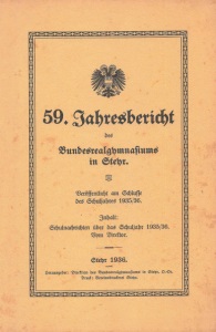 - Jahresbericht Bundesrealgymnasiums in Steyr. Veröffentlicht am Schlusse des Schuljahres 1935/36. Inhalt: Schulnachrichten über das Schuljahr 1933/36. Vom Direktor. Steyr 1930. Herausgeber: Direktion des Bundesrealgymnasiums in Steyr, O.=Oe. Druck: Vereinsdruckerei Steyr.