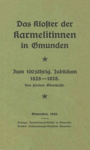 Das Kloster der Karteileiter. Gmunden jährig, jubiläum 1828—1928. von Florian Oberchristl. Gmunden, 1928. Verleger: Karmelitinnen=Kloster in Gmunden. Drucker: Salzkammergut-Druckerei, Gmunden.