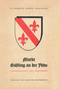 ^. ..tiLaOBBOMV I $ äi 7\.^ i f) ■t ■•.,', - Siegelab druck aus der Josephini sehen Fassion OWW 525 (Niederösterreichisches Landes-Archiv). Aus dem Landesgesetzblatt für das Land Niederösterreich vom 25. April 1962, 19. Stück Nr. 78; Kundmachung der niederösterreichi.schen Landesregierung vom 14. März 1962. „Der Landtag von Niederösterreich hat in seiner Sitzung vom 1. März 1962 gemäß §2 des Gesetzes vom 17. Juni 1926, LGBl. Nr. 145, die Er hebung der Ortsgemeinde Göstling an der Ybbs im politischen Bezirk Scheibbs zum Markte beschlossen." .Marktwappen und Flaggenfarben: „In einem silbernen (weißen) Schild ein roter Schrägrechtsbalken, zu beiden Seiten begleitet von je einer roten Liiie". Die Flaggenfarben sind ,.Weiß-Bot". Das Wappen nahm die Marktgemeinde Gösiling an der Yl)l)s vom bedeuten den Hammerherrnge.schlechl llumel. Dieses Gesclilechl war durch Jahr hunderte in Gösiling an der Ybbs ansässig und wiederholt waren Mitglieder dieser Familie .Ymtmänner. Aus dem in der Josephinischen Fassion vor gefundenen Siegelahdruck des Hammerherrn, hohen Beamten der Freising'- schen Herrschalt und .Ymtmannes von Göstling an der Y'hhs, Kart Engel bert H II m e 1, hat Herr Diplom-Graphiker Wilhelm M a y r, Wien IV, Btechturmgasse 12/12a. den Entwurf des Marktwa|)pens erstellt.
